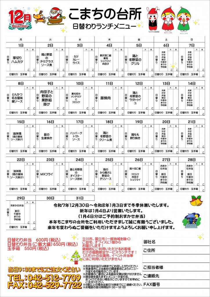 令和7年12月 日替わりランチメニュー!