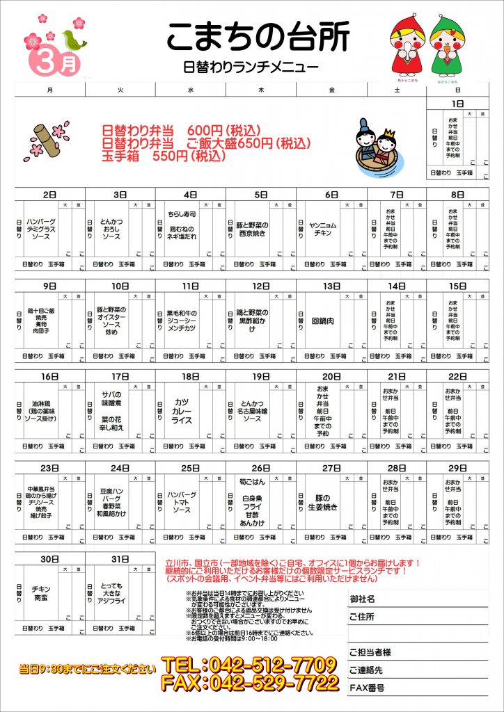令和8年3月 日替わりランチメニュー!